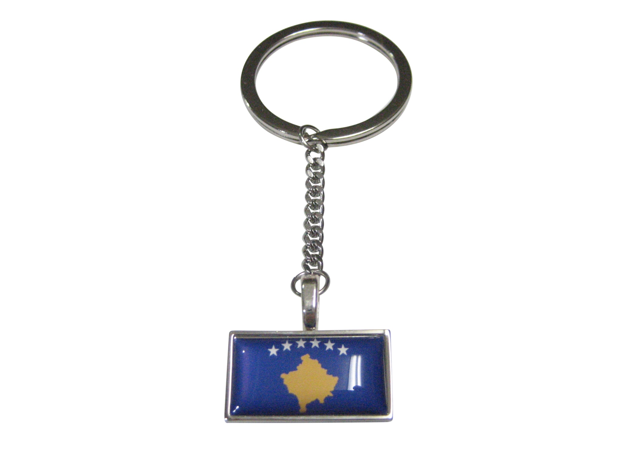 Thin Bordered Republic of Kosovo Flag Pendant Keychain