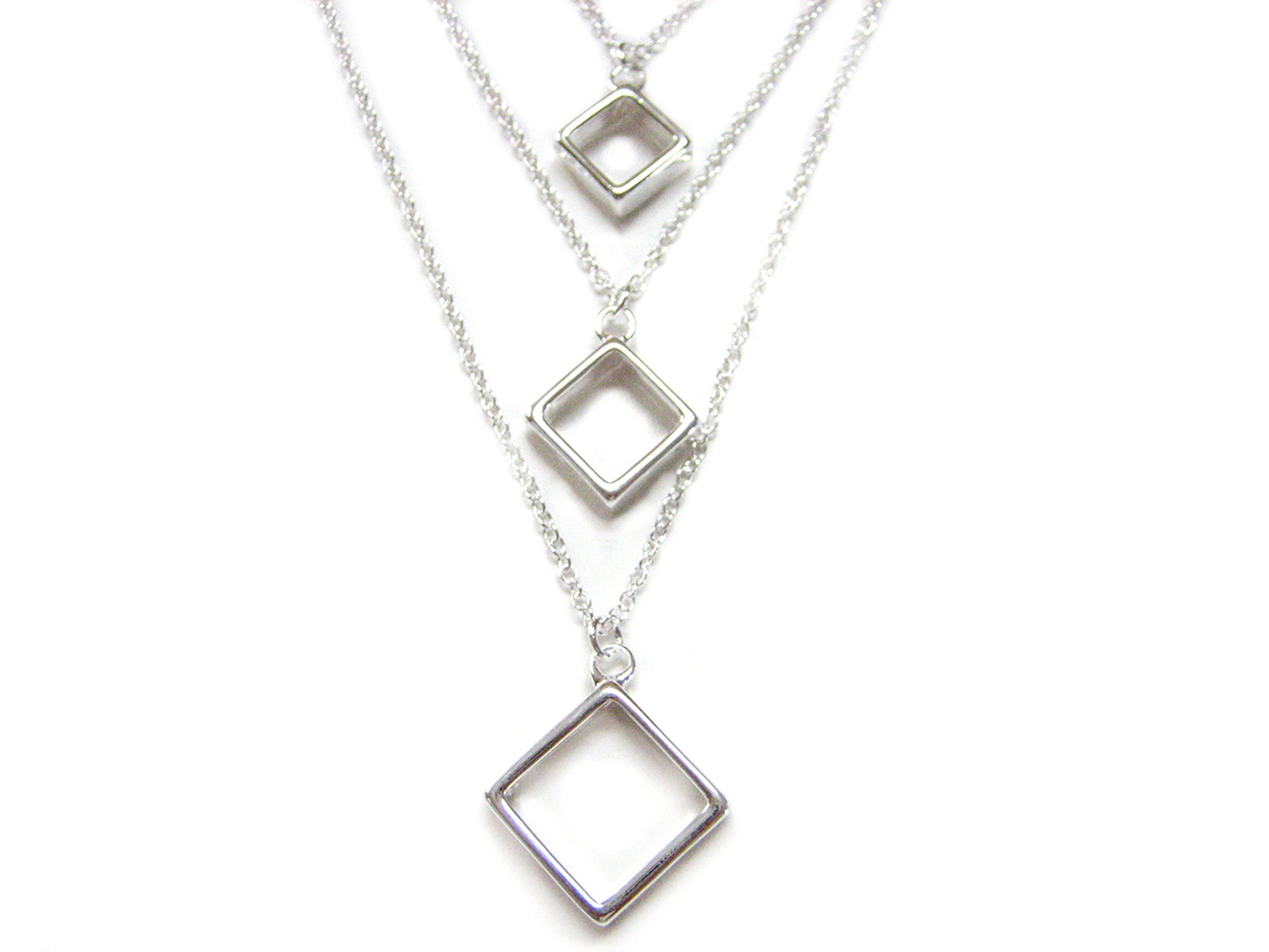 The medium chain is 19 inches long. The medium square pendant is 1/2 inch wide.